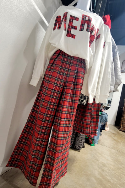 PLAID WIDE LEG PANT